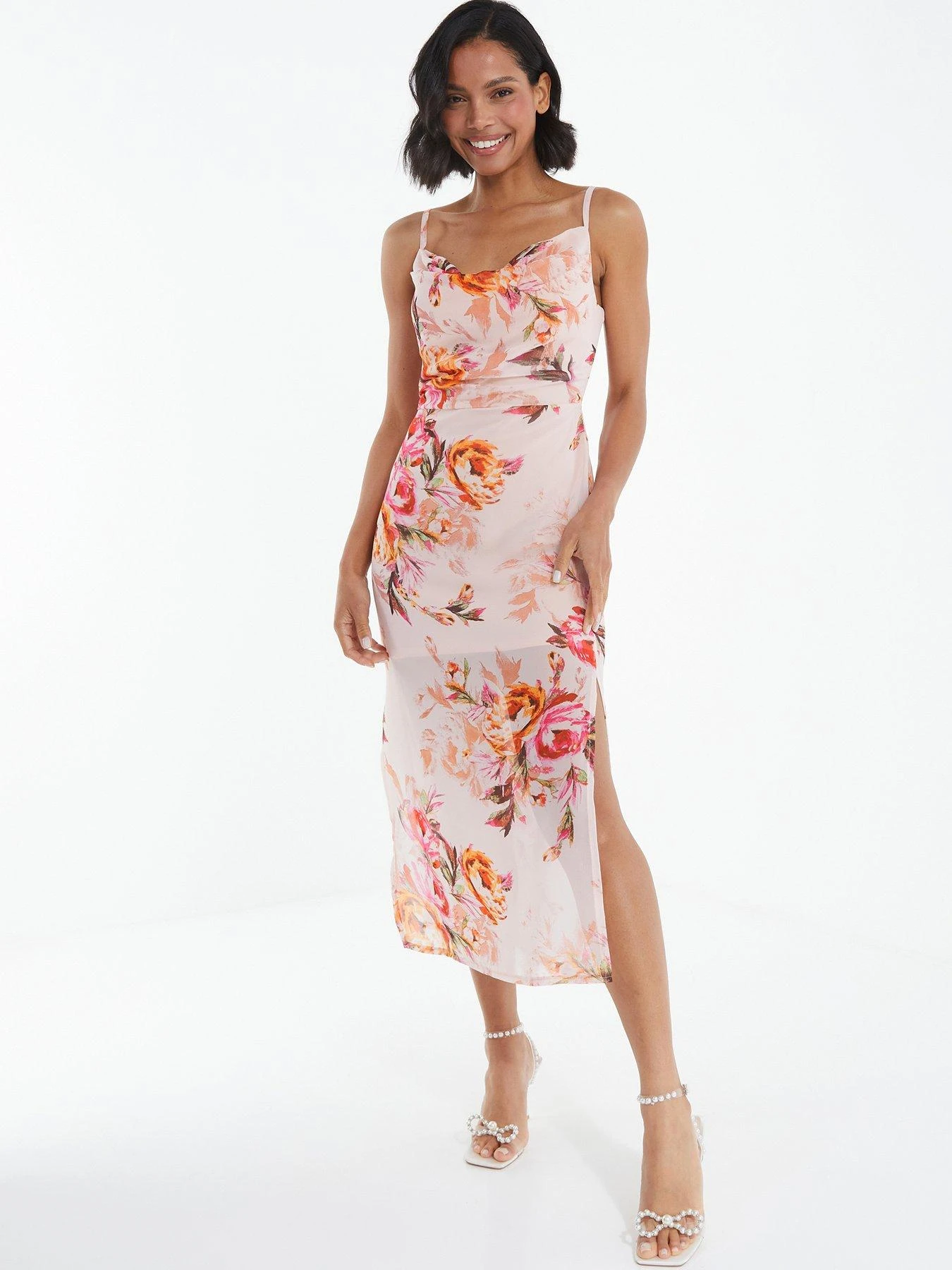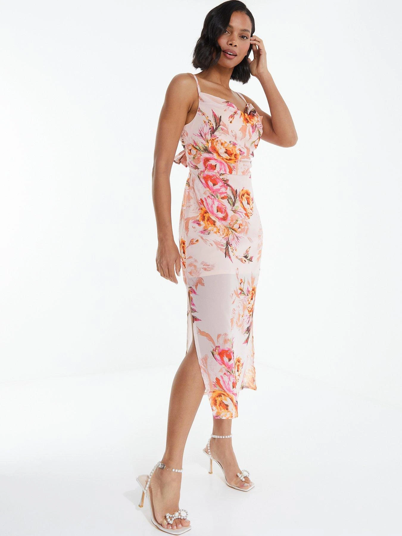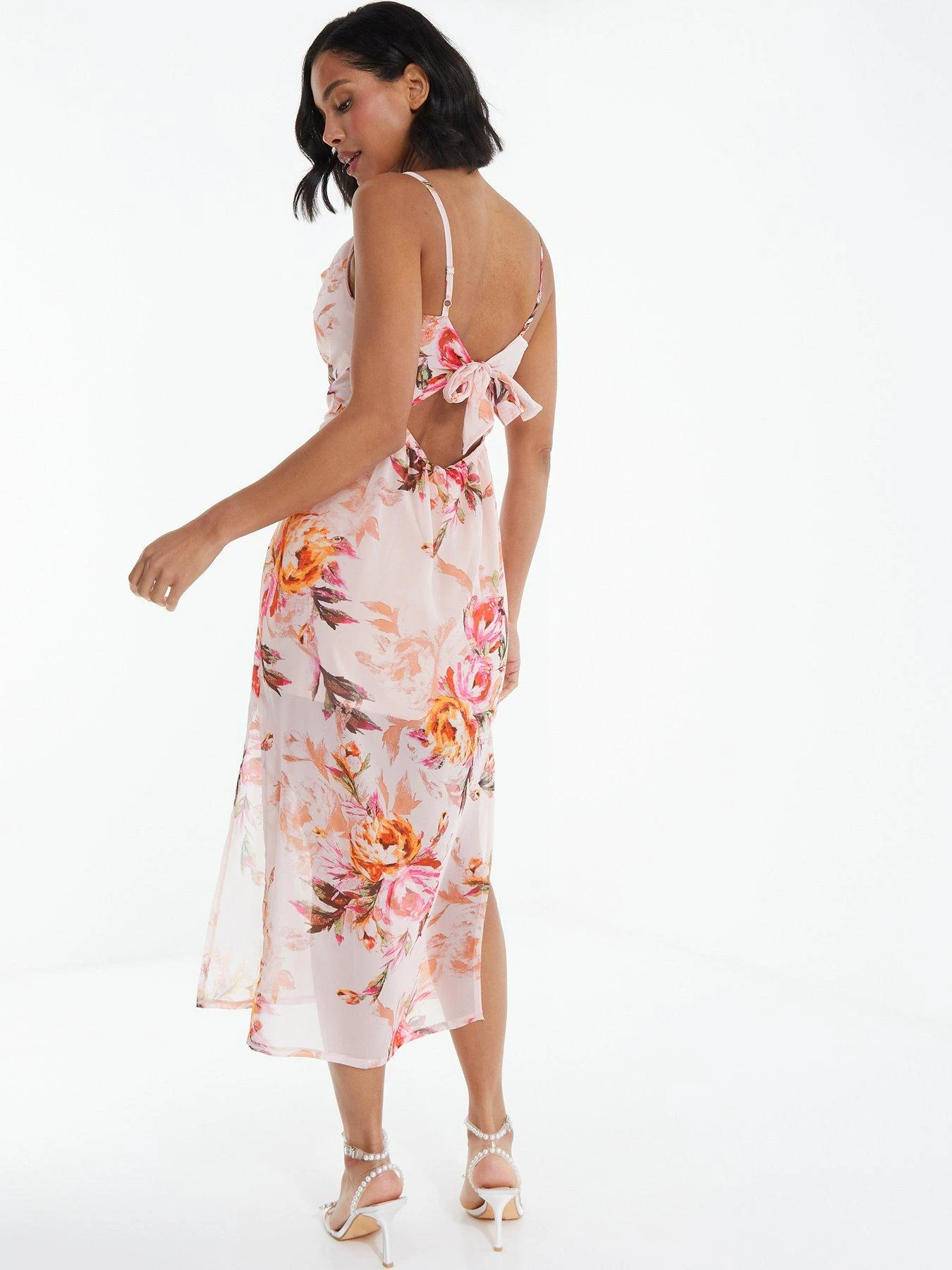 Quiz Floral Tie Back Bodycon Midaxi Dress