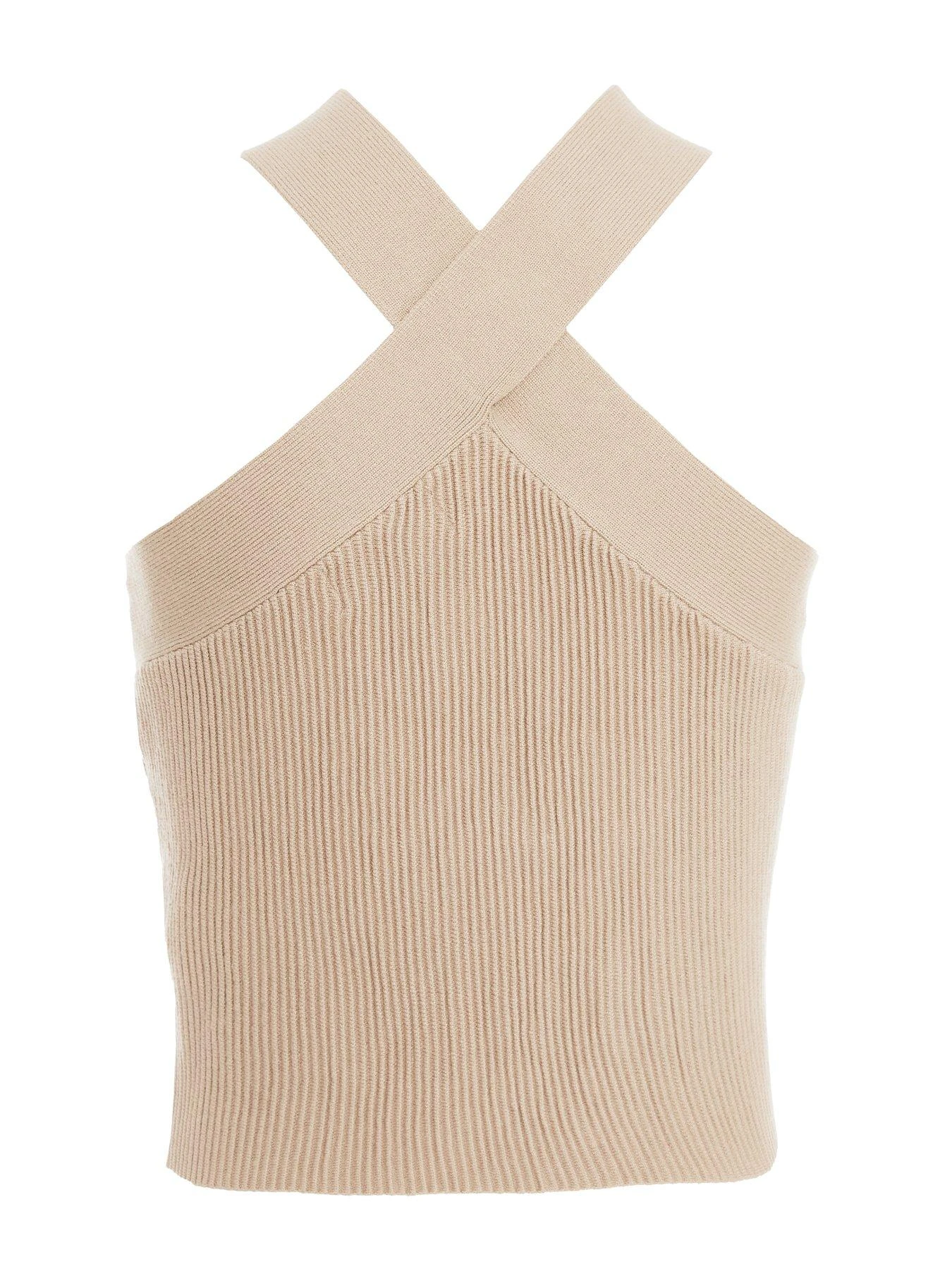 Quiz Knitted Cross Neck Crop Top