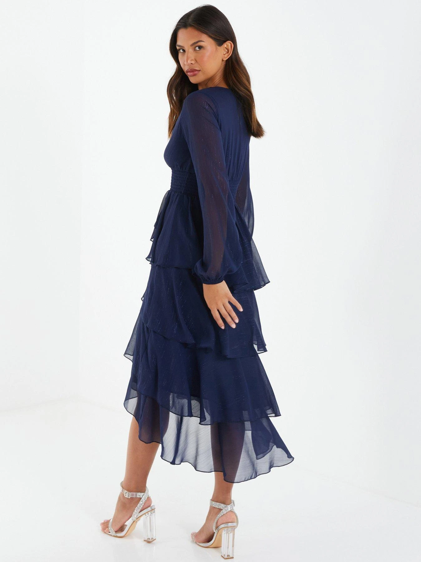 Quiz Navy Long Sleeve Tiered Midi Dress
