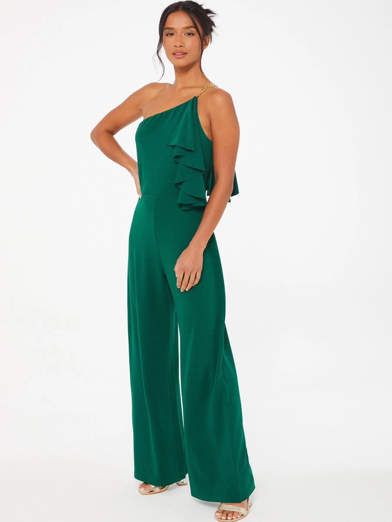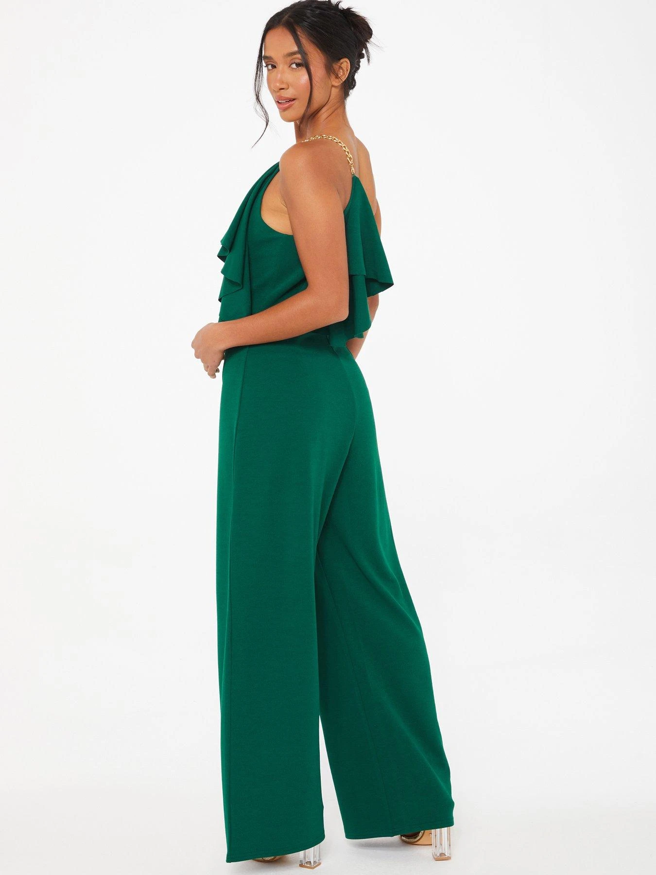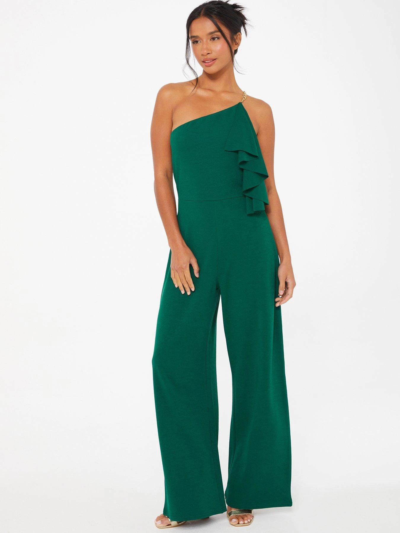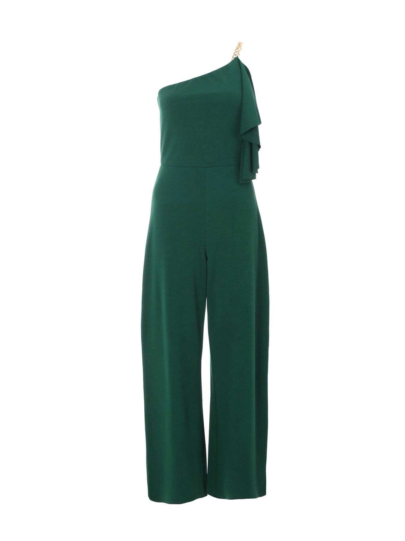 Quiz Petite Bottle Green One Shoulder Frill Palazzo Jumpsuit