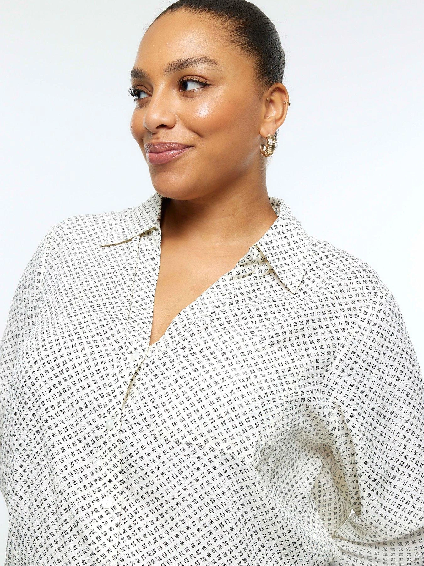 - A versatile piece in a timeless geo print design, this shirt can see you from the office to drinks with the girls. Pair with high waist trousers and heels for a chic and effortless look