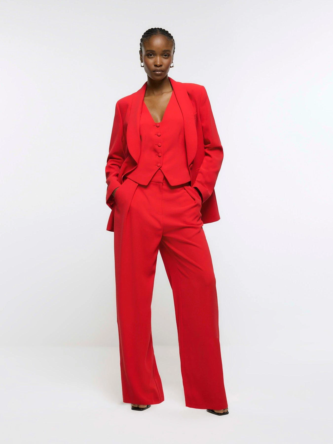 River Island Wide Leg Pleated Trouser – Red