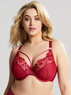 Creating a stylish and sexy look within the Sculptresse collection, the Jaida is back in a seductive scarlet shade. This fashion forward plunge bra provides supportive and uplifted fit across all sizes creating forward projection for a great cleavage. The rigid tulle bottom cups and embroidered top cups offer stability and the double layer, shaping wings with padded hook and eye gives smoothing coverage.