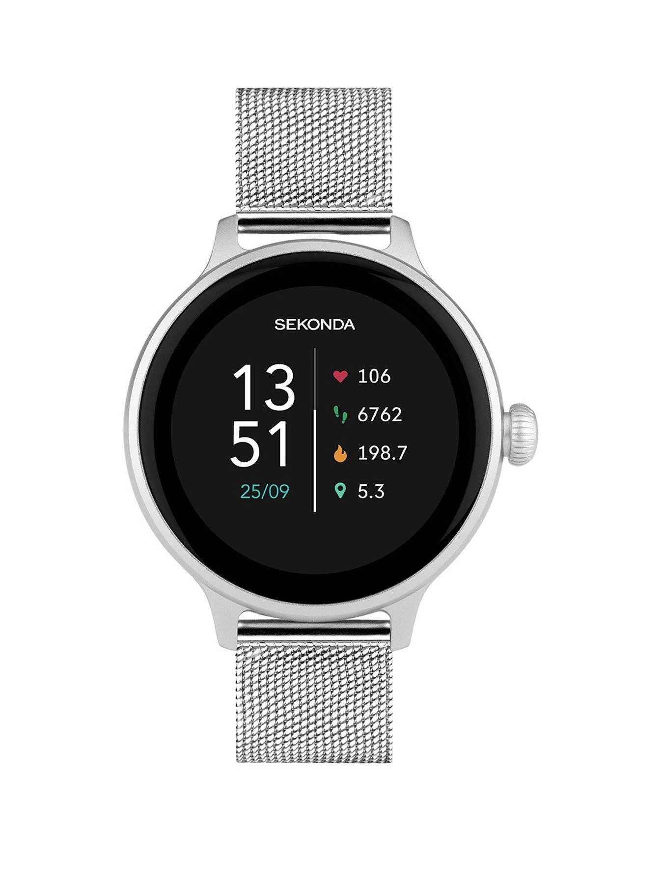 This Sekonda Connect Smart Watch fastens with a silver stainless steel mesh bracelet with quick release spring bars so you can easily change the strap. The watch has a silver ion-plated alloy case with a 1.1 inch AMOLED, fully interactive touch screen display. It has a water resistance rating of IP67, meaning it is showerproof and splashproof but we do not recommend using it for swimming or water sports. With lots of fitness and health tracking apps, including 14 sports modes, heart rate monitor, sleep monitor and more, social and entertainment features.