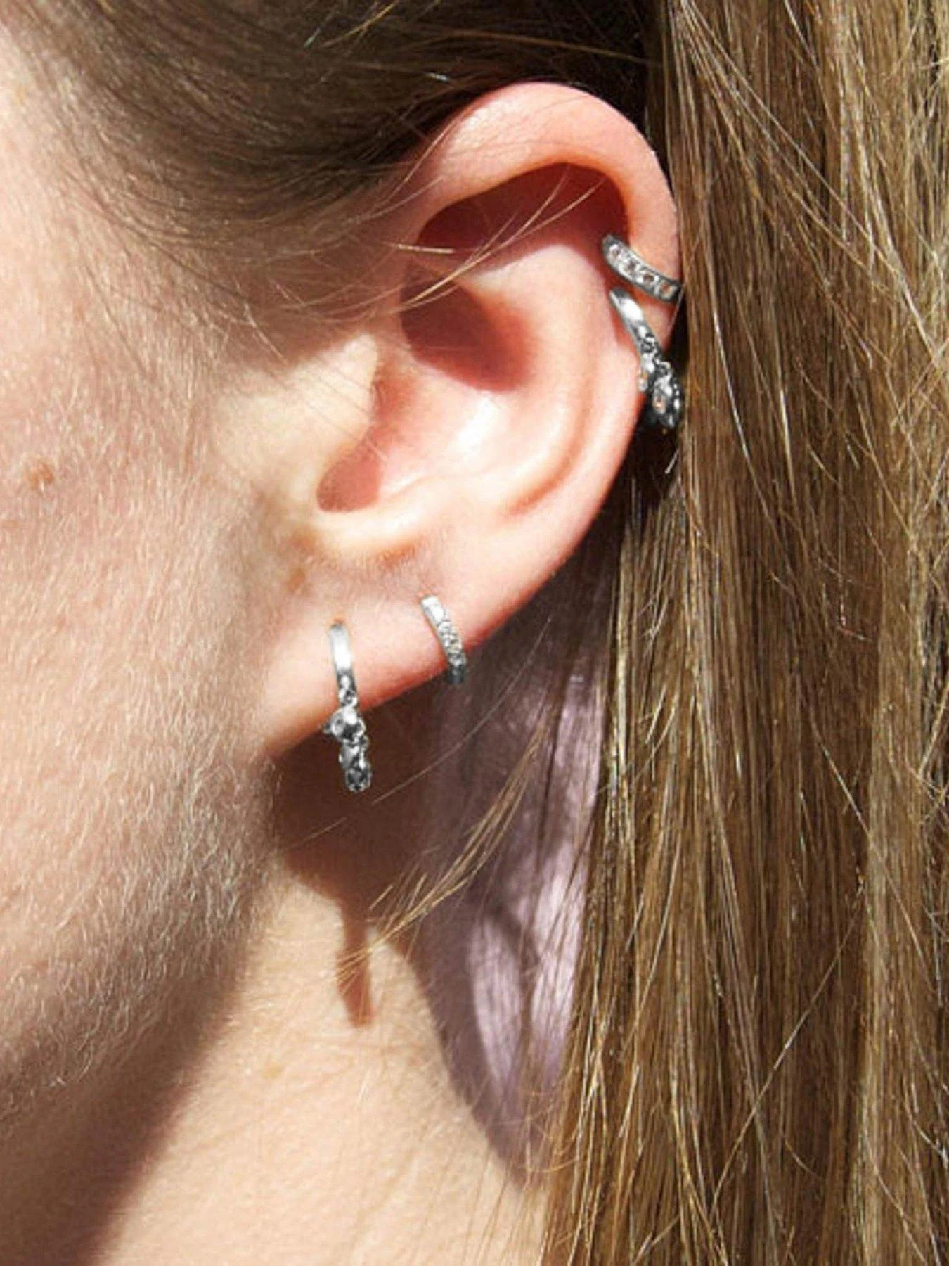 - Sterling silver huggie hoops