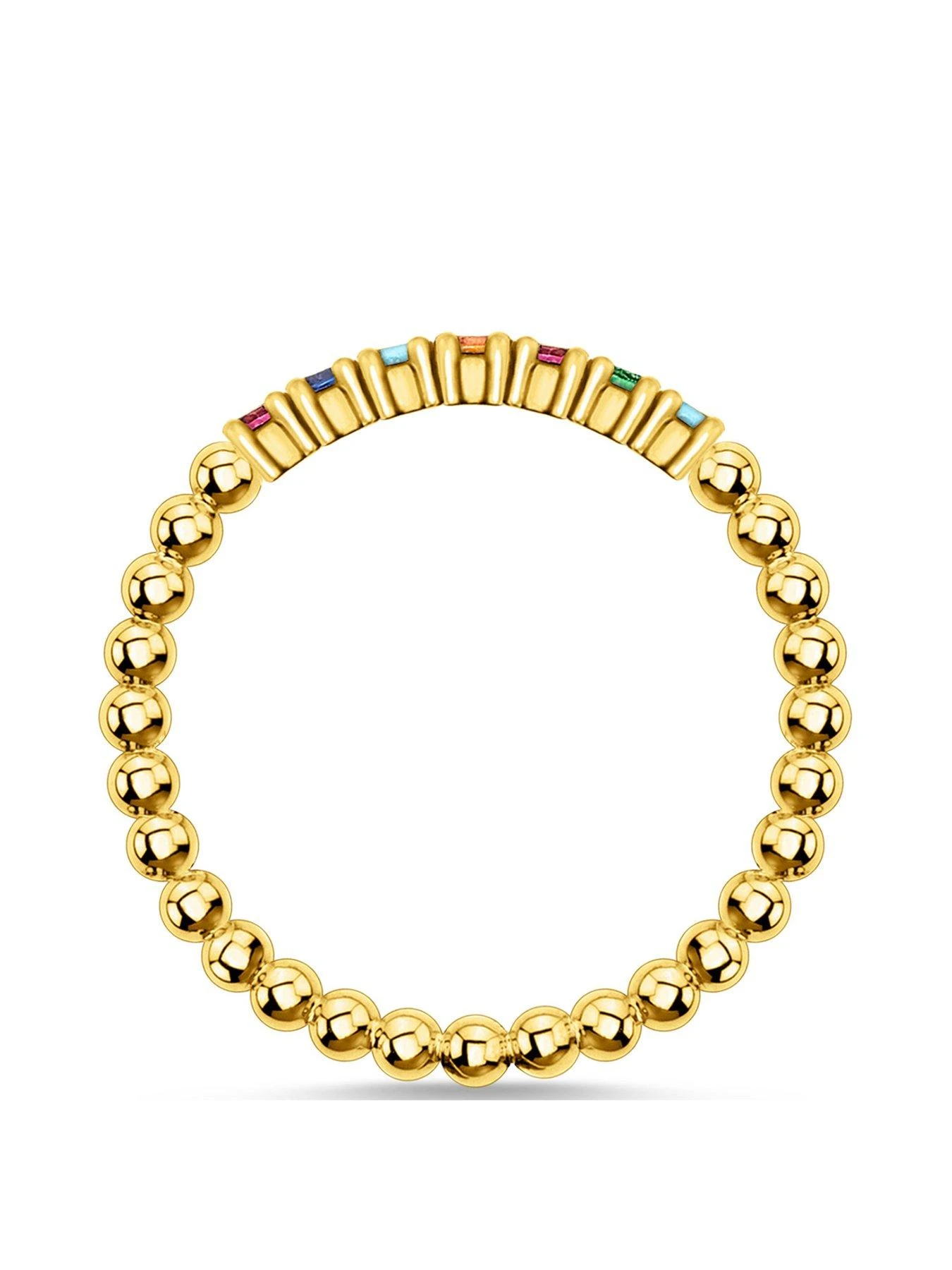 The ultimate stacking ring! Whether worn on its own or as part of a ring stack arrangement in combination with other designs, this ring is a must-have for any jewellery box. The Dot Ring is handcrafted from 925 Sterling silver, features a radiant 18-carat yellow gold plating and a bead structure with colourful stones.