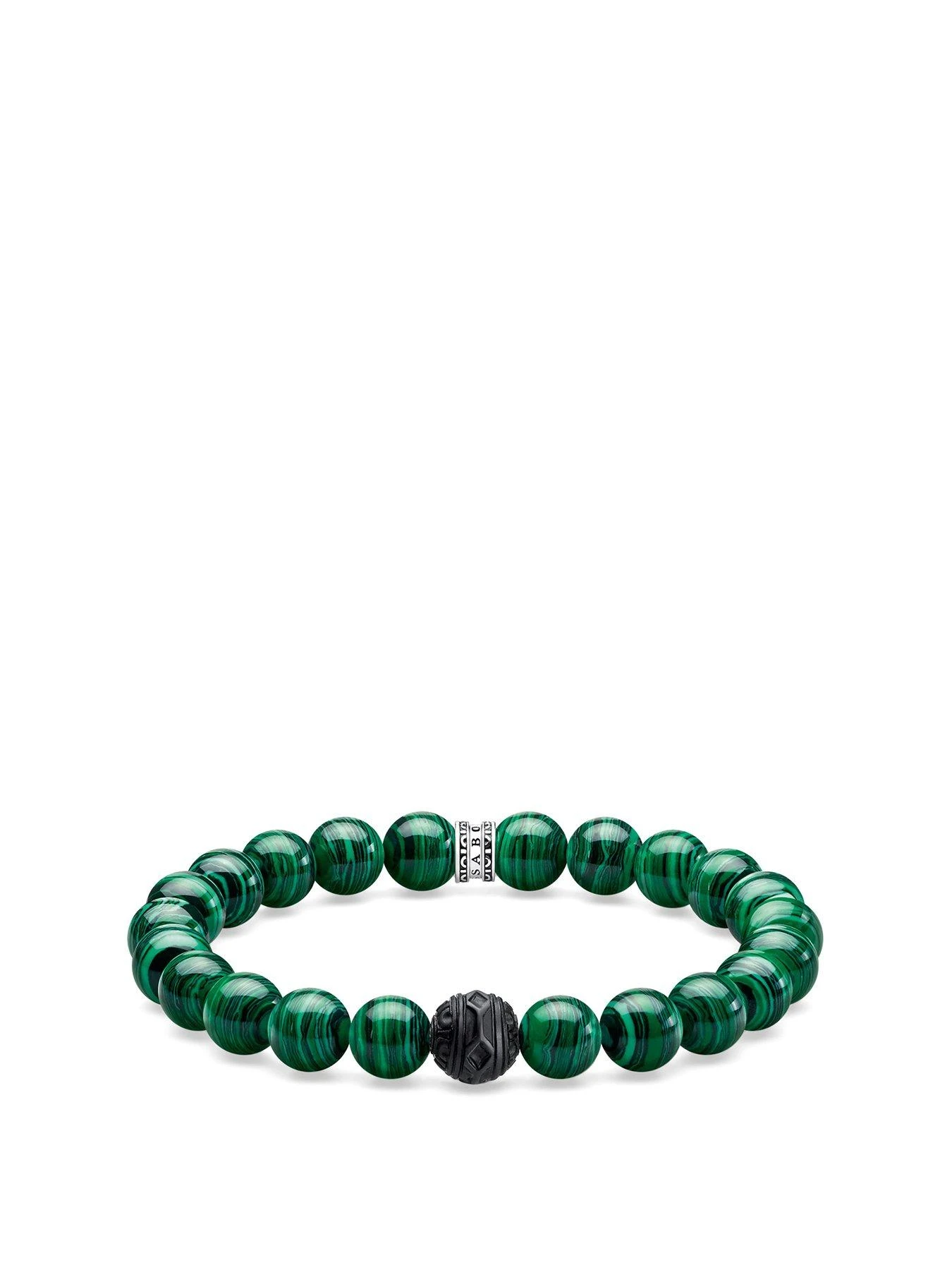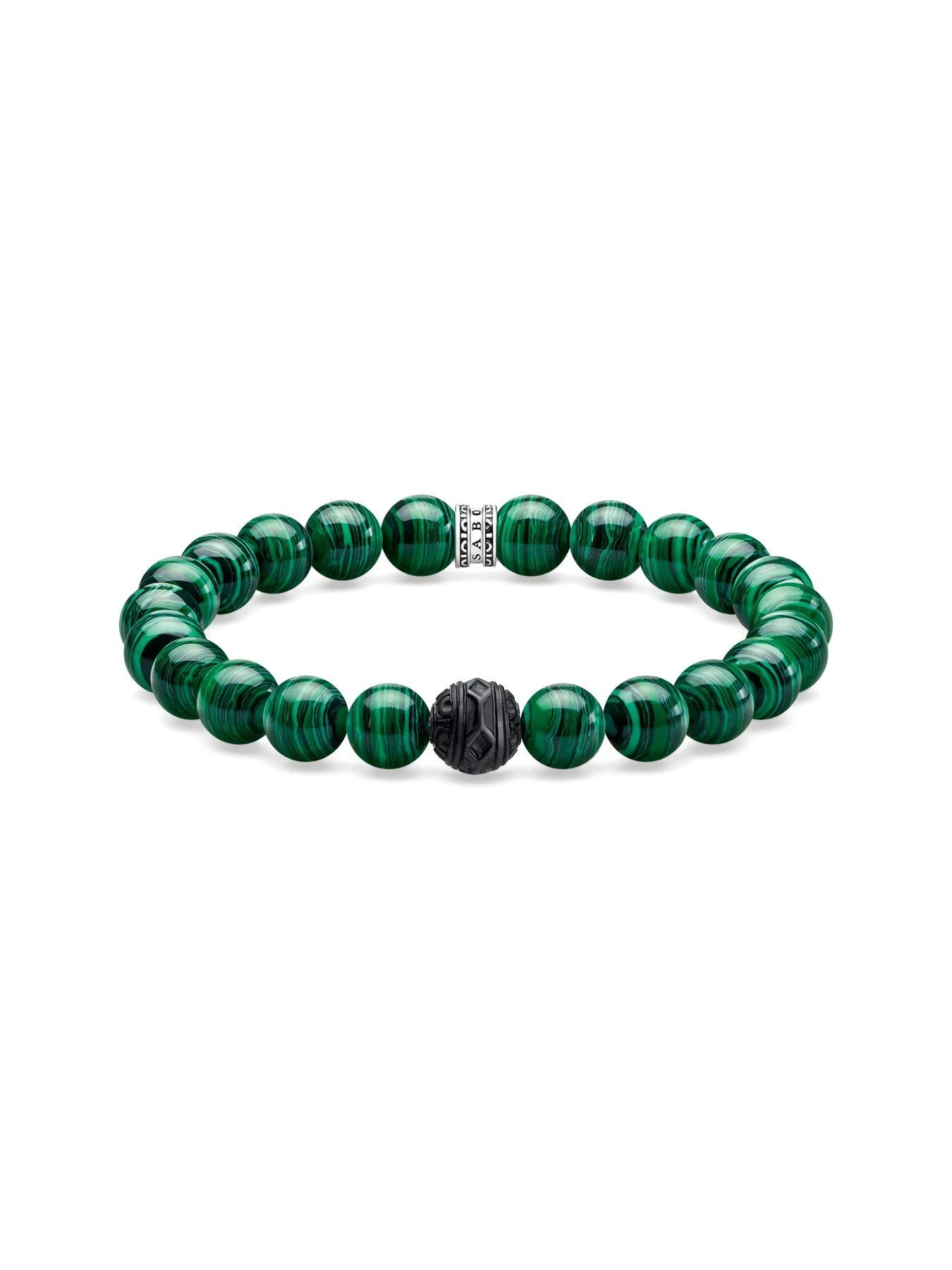 Stylish everyday companion: The stretch bracelet captivates with a matt, elaborately handcrafted obsidian Bead with fine engravings and Beads of imitation malachite in the green colour of the jungle. A cool statement with symbolic character.