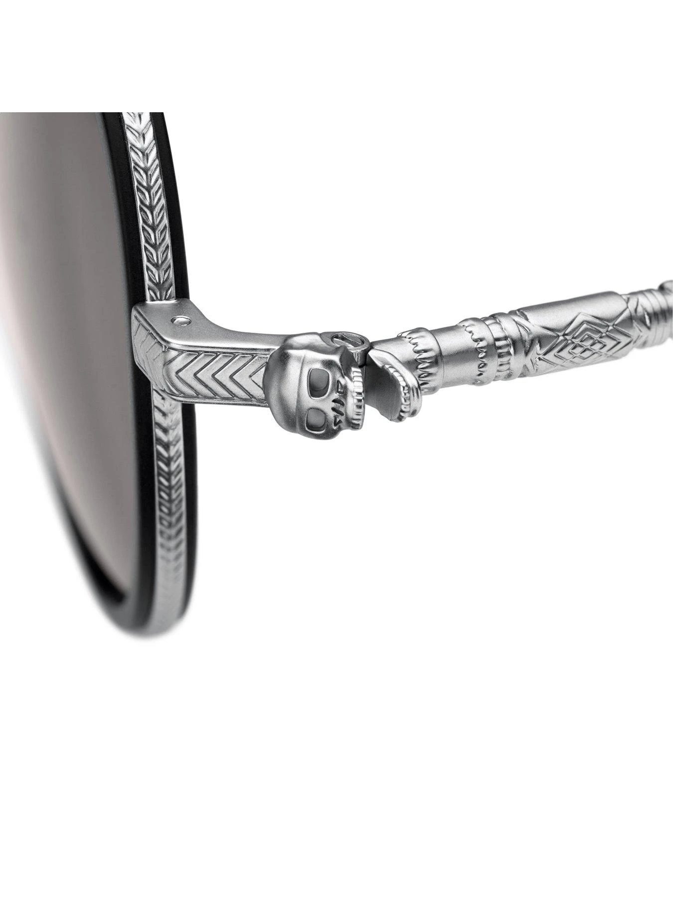 – Embossed metal frame, nose bridge, brow bar and temples with graphic design