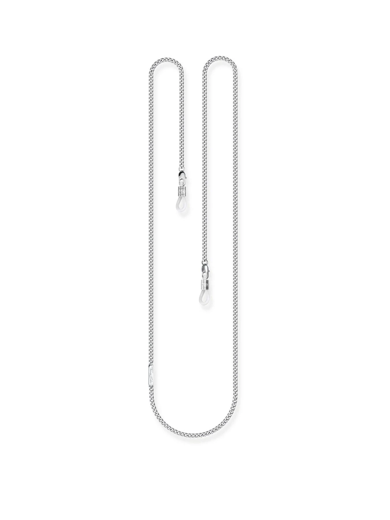 Metal eyewear chain with silicone loops at the ends to attach to the temples. The small metal elements of the silicone loops with THOMAS SABO logo can be moved so that the loop can be fixed easily and securely to any temple.