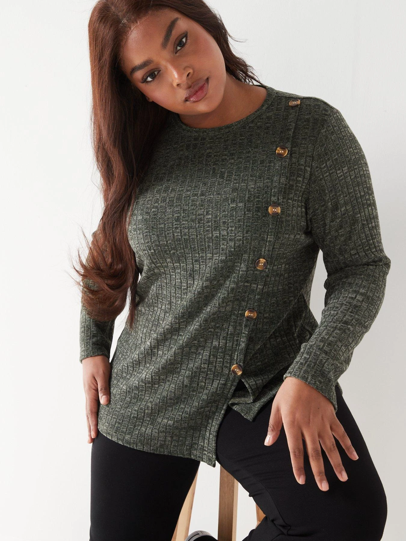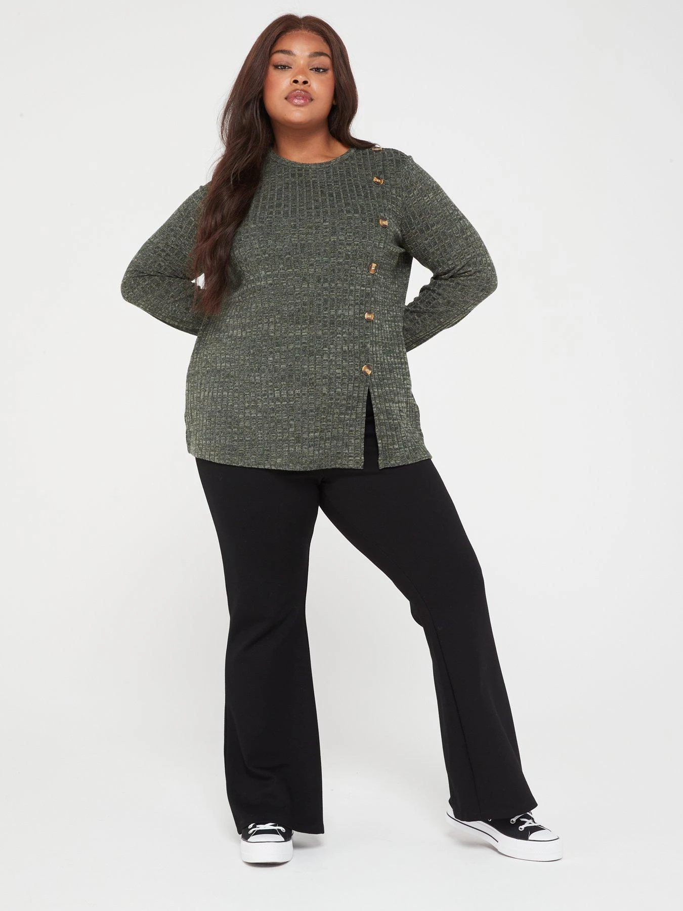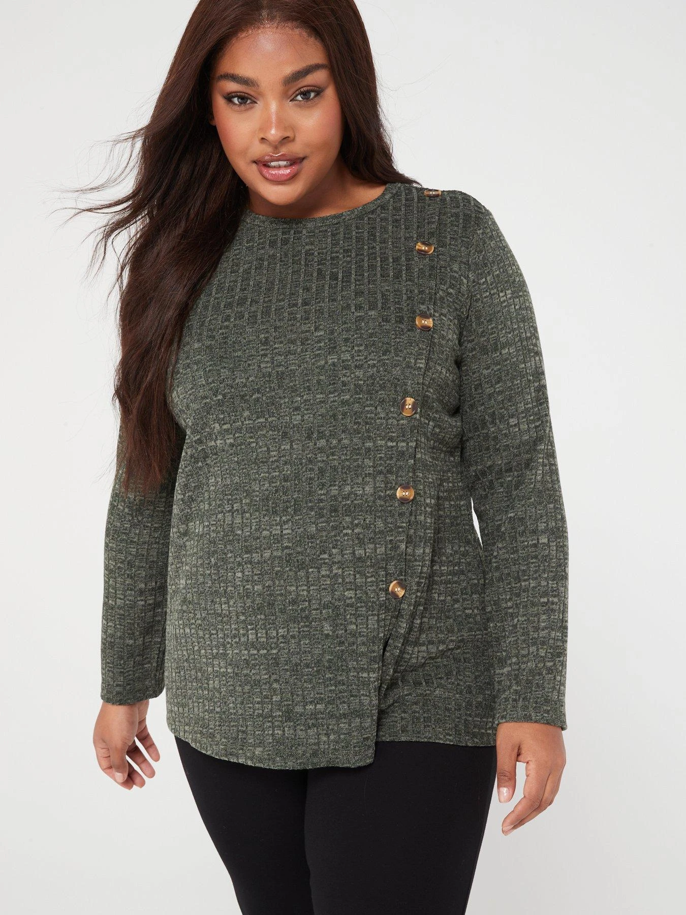 V by Very Curve Space Dyed Button Rib Long Sleeve Top