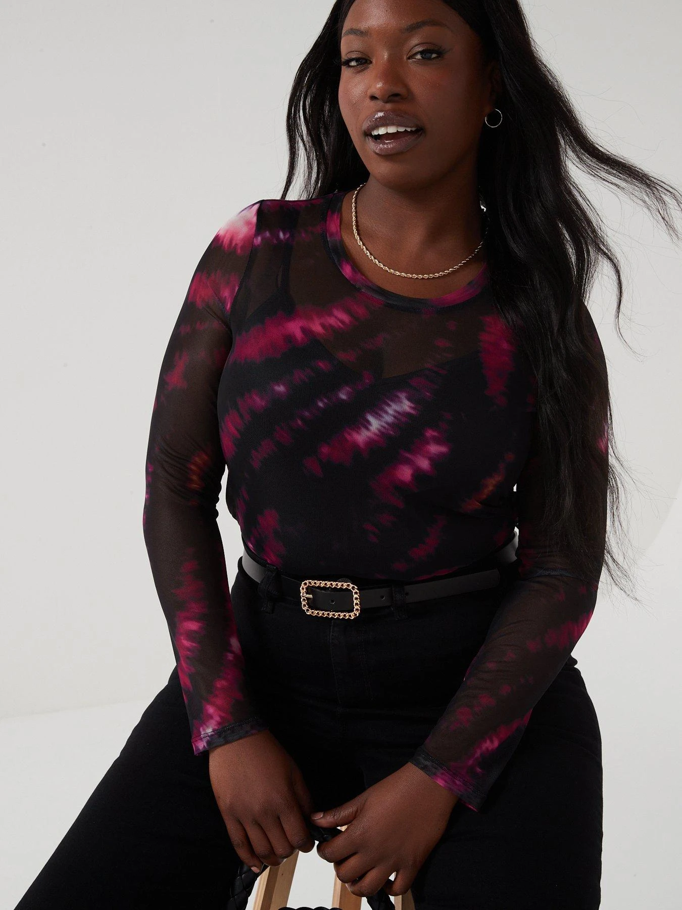 - Tie Dye Animal Mesh Top from V by Very Curve