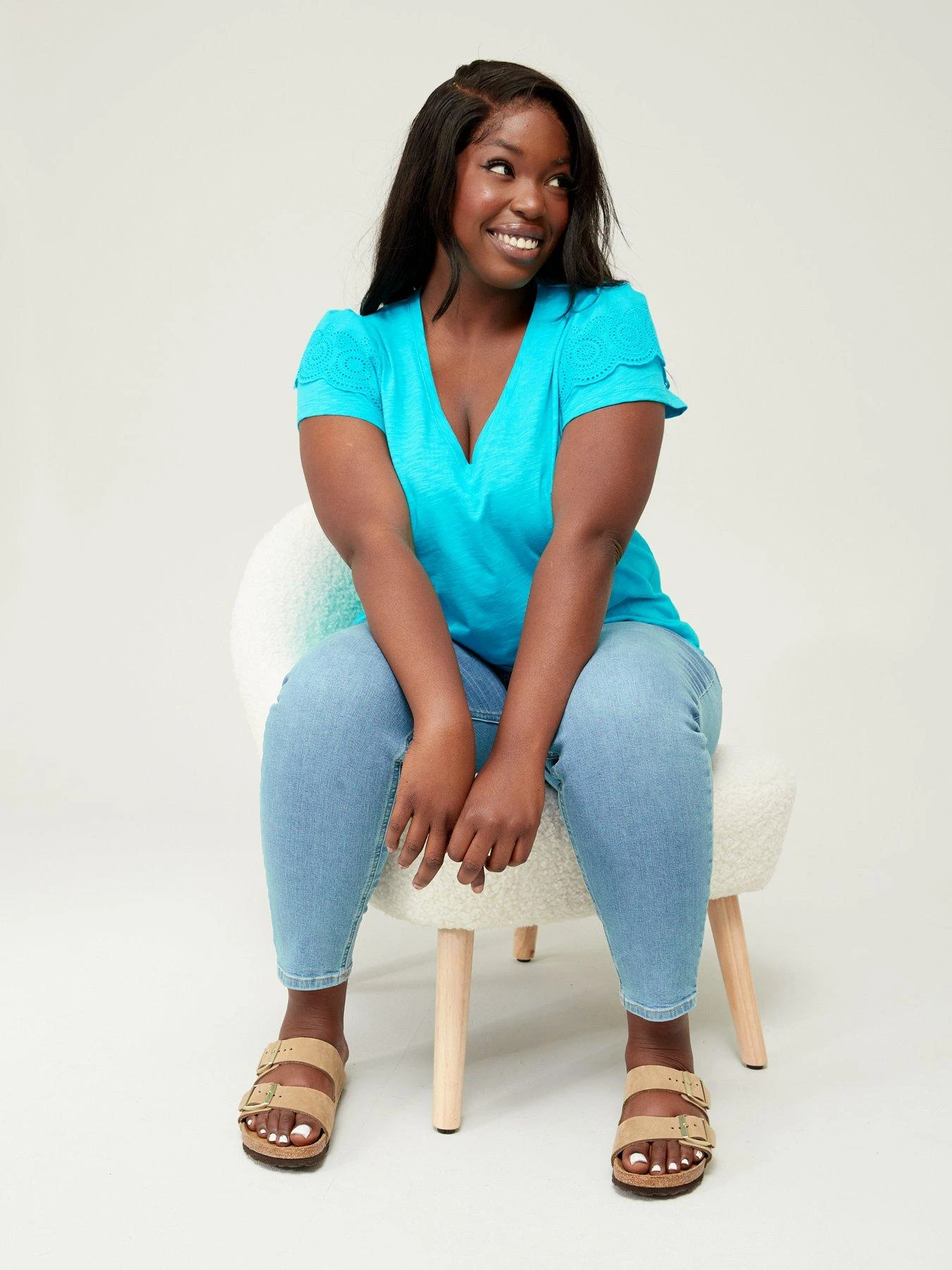 - V Neck Broderie Short Sleeve Top from V by Very Curve