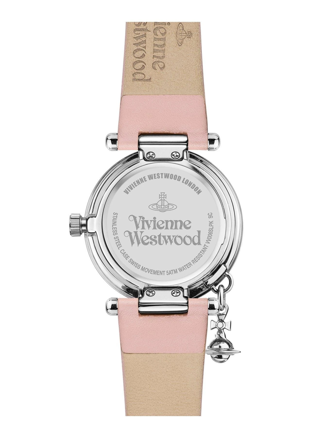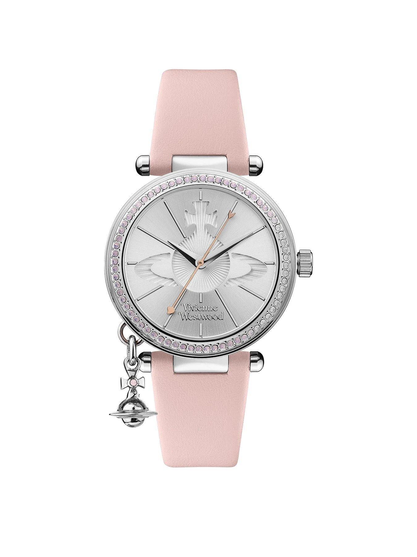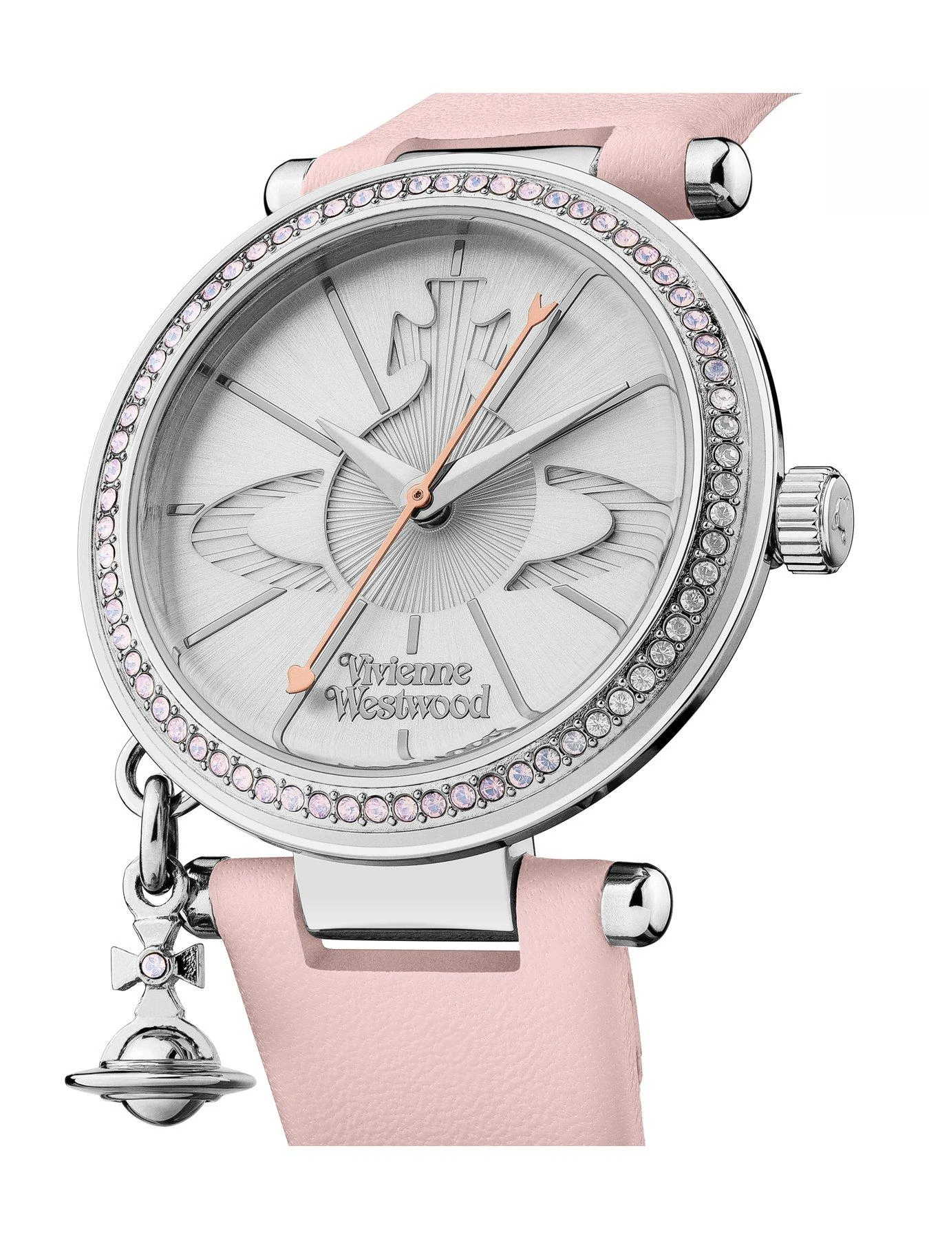 Vivienne Westwood Orb Pastelle Silver Crystal Set Dial with Orb Charm Pink Leather Strap Ladies Watch