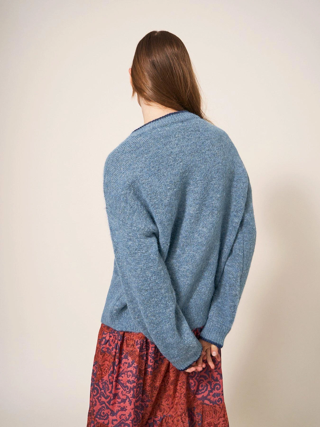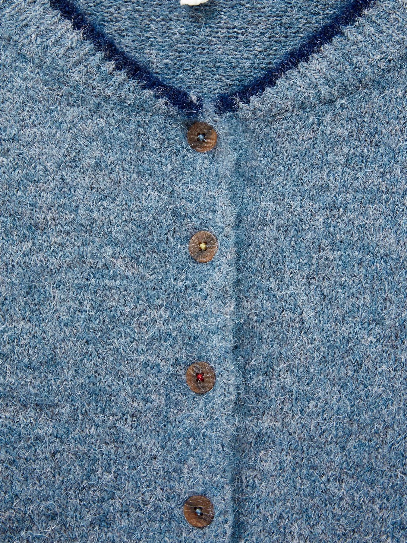 We call this one a cardi-bomber jacket hybrid. It’s got buttons, a grandad collar, and a contrast trim. And the tendency to go really well with those trousers you love.