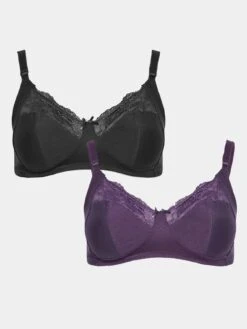 Yours 2pk Cotton Lace Non Wire Non Pad Bra