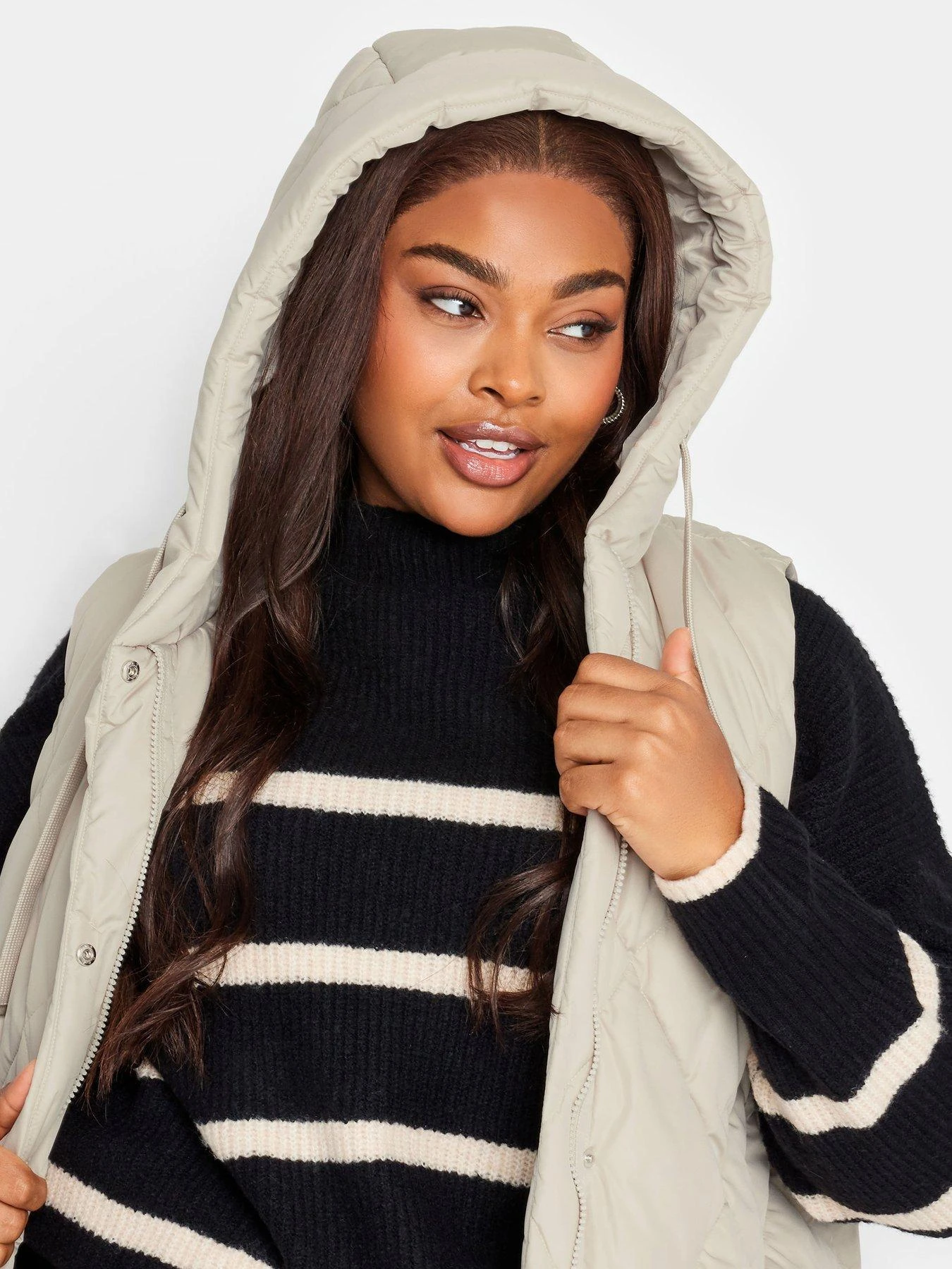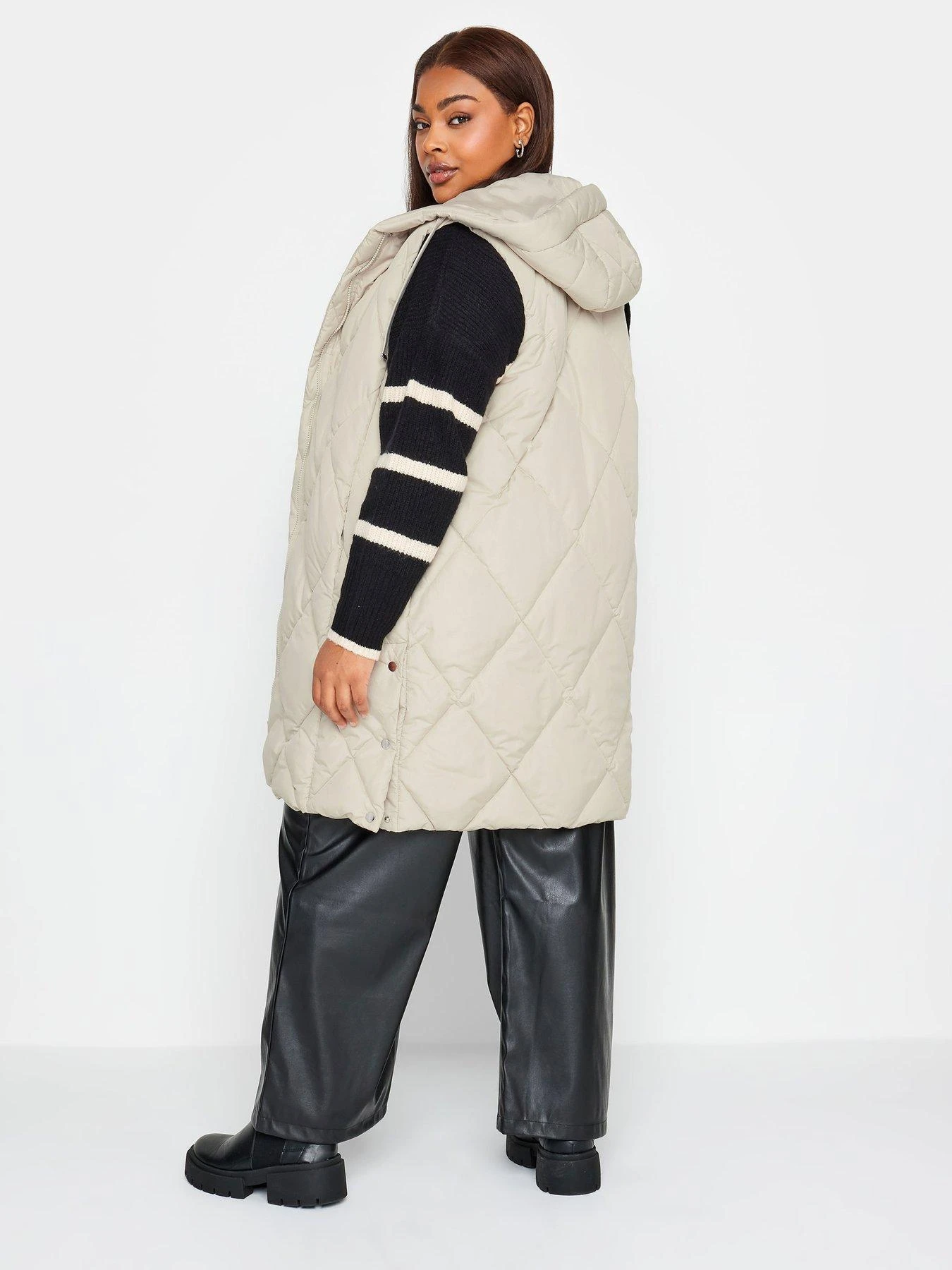 Get ready for the new season ahead with this must-have midi gilet. Made from a woven fabric, it features a diamond quilted design with a zip fastening and two side pockets. Simply layer over jeans and a jumper for a look that is perfect for running errands.