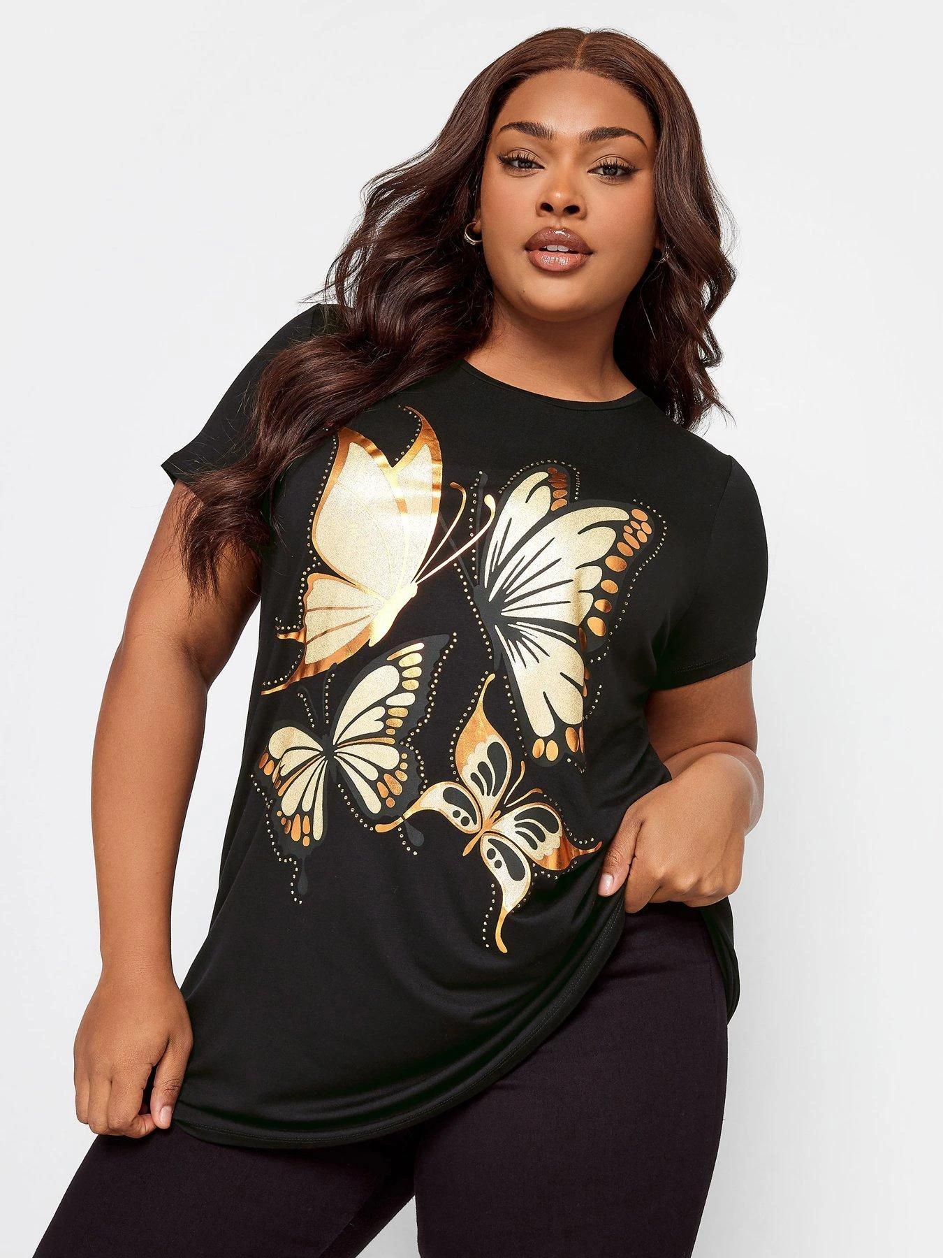 Yours Embellished And Foil Glitter Printed T-Shirt