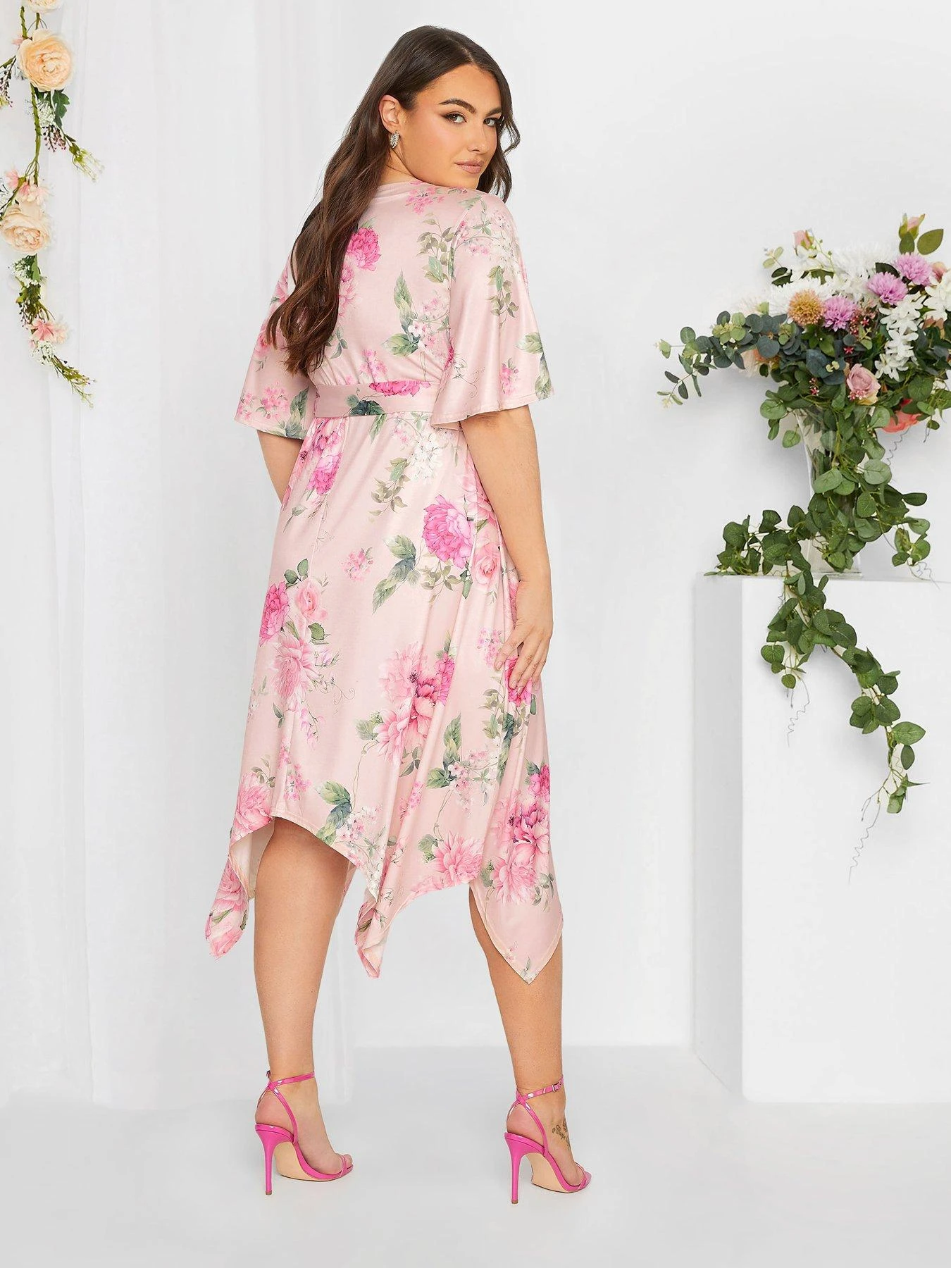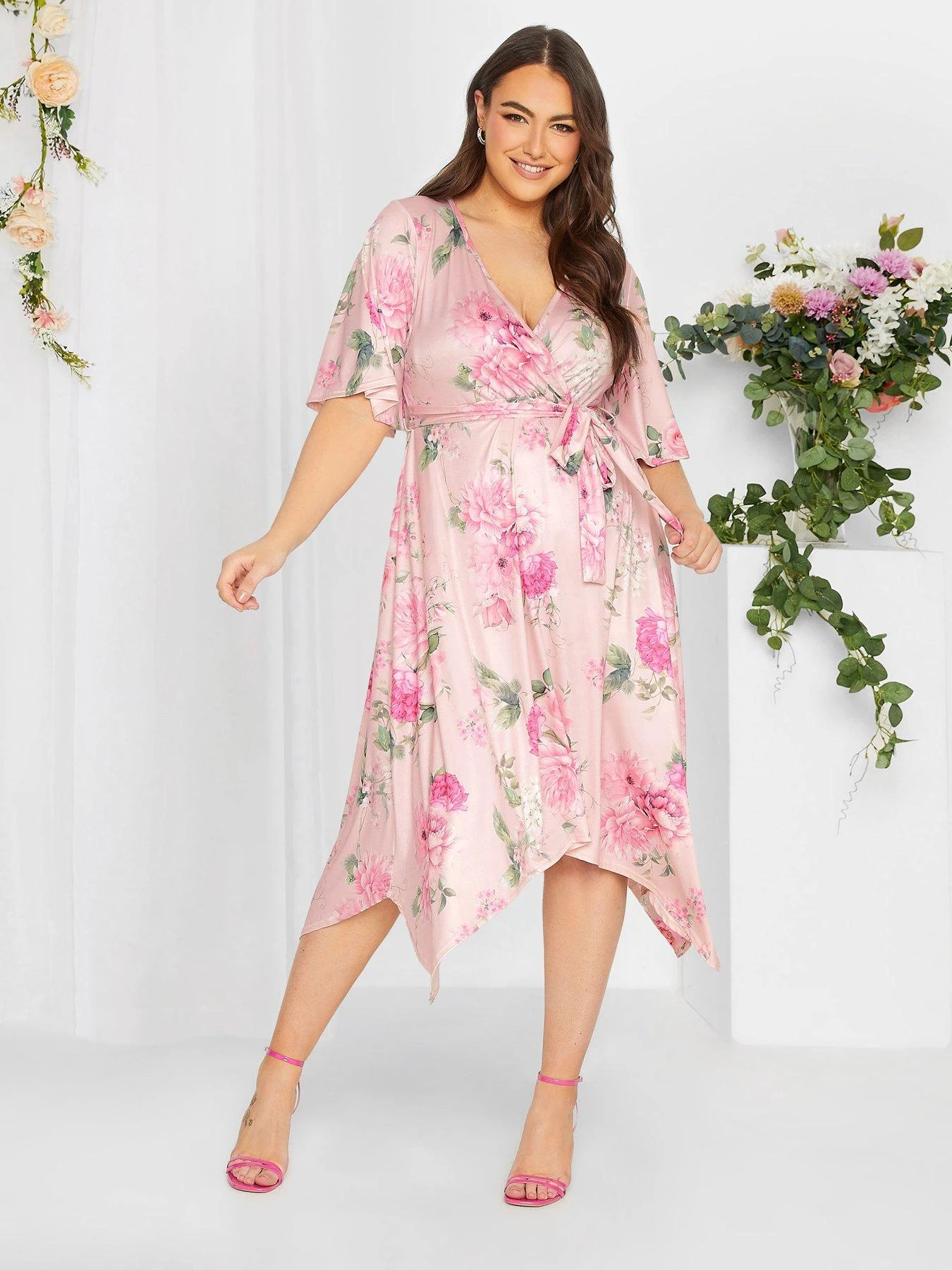 - Upgrade your new season collection with this plus size hanky hem dress from Yours London. Comfortable in a jersey fabric, it features a floral print with a wrap front and a hanky hemline. Complete the look with heels and a shoulder bag for effortless elegance.