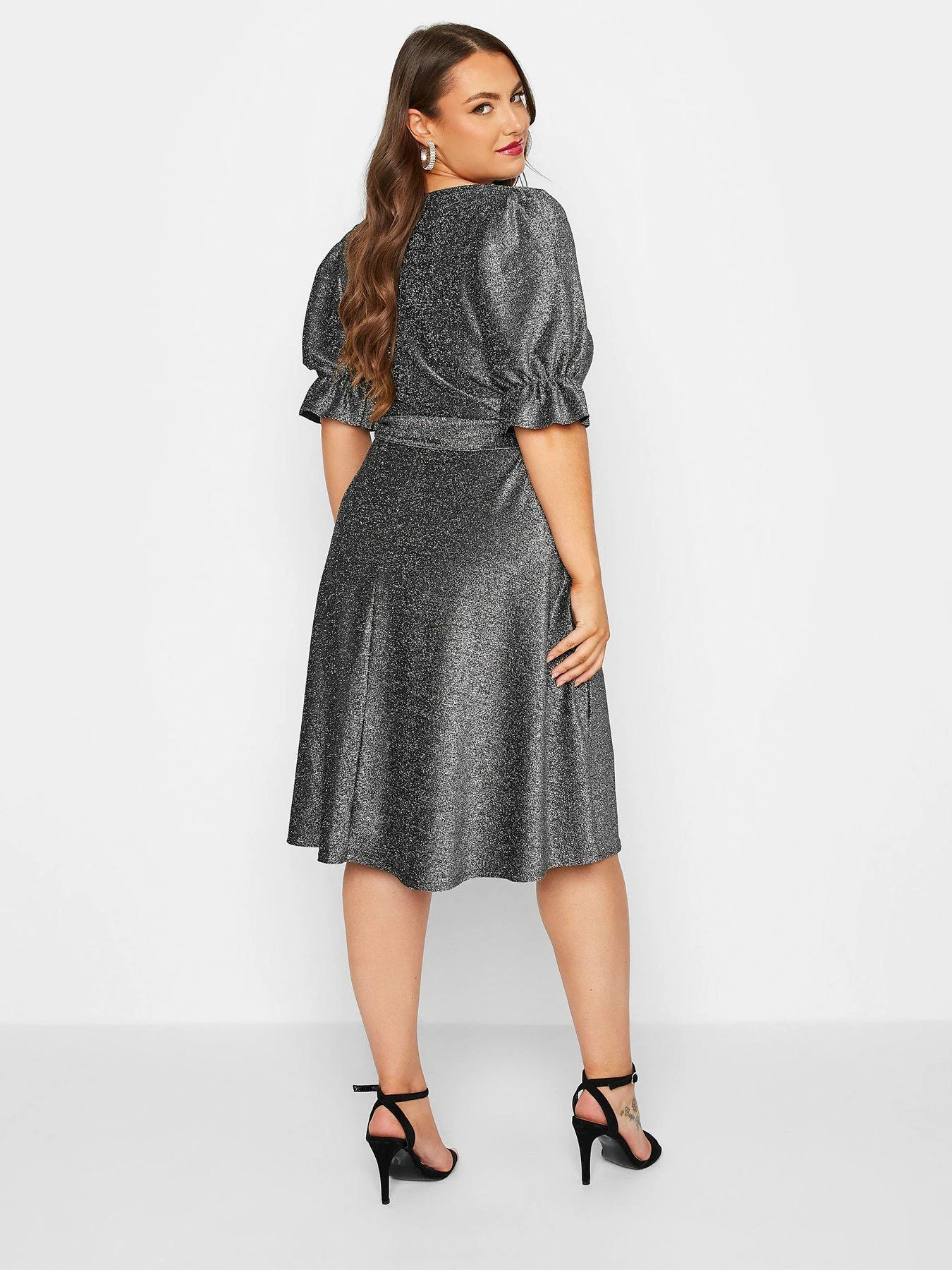 - Get set for party season with this stunning silver pick. Short puffed sleeves lend a voluminous feel, and the swishy silhouette is a must for the dance floor!