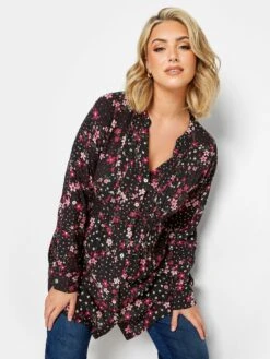 Yours Pintuck Shirt Black Pink Floral