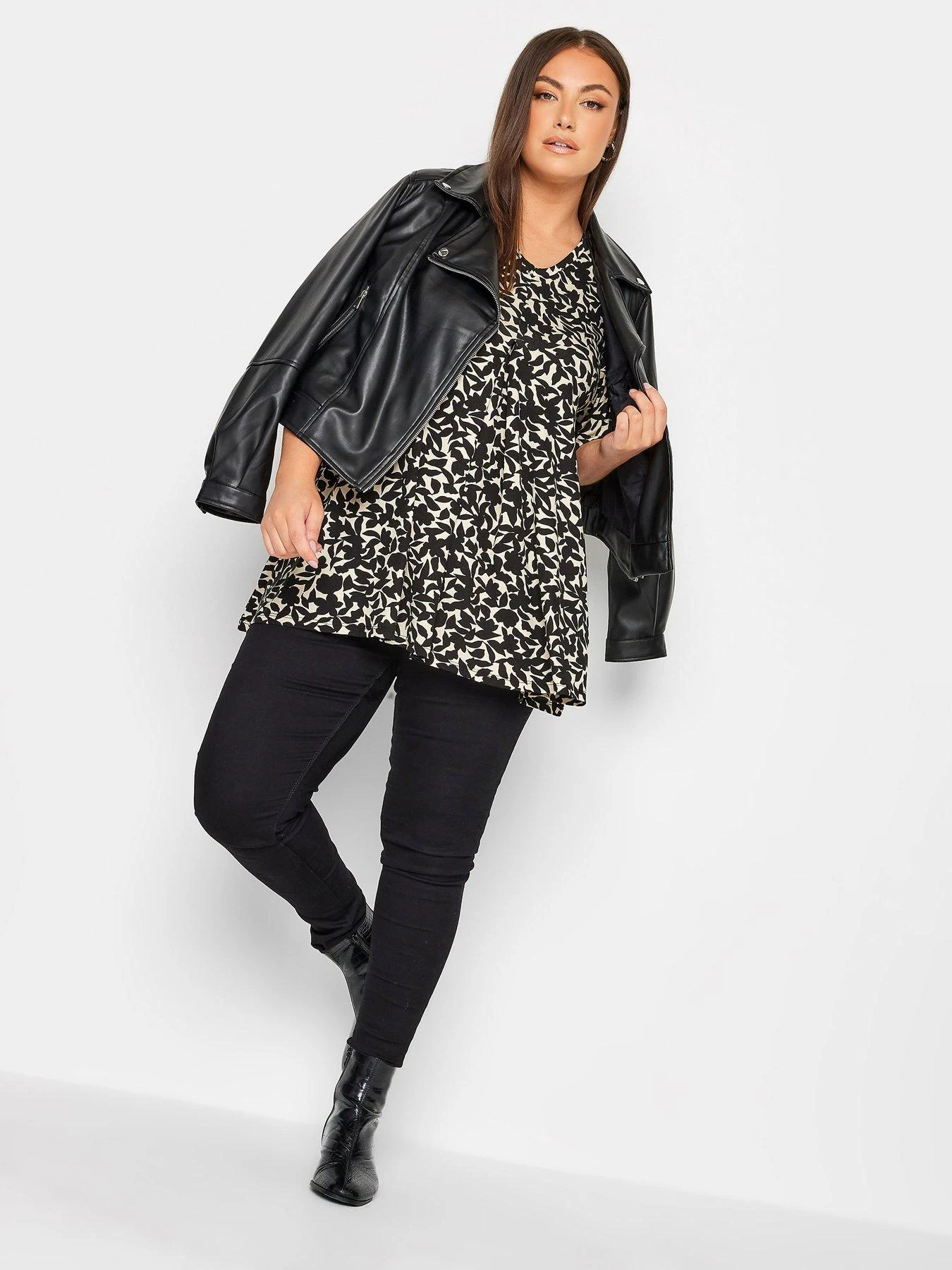 Yours Pleat Swing Angel Sleeve Top Mono Silhouette