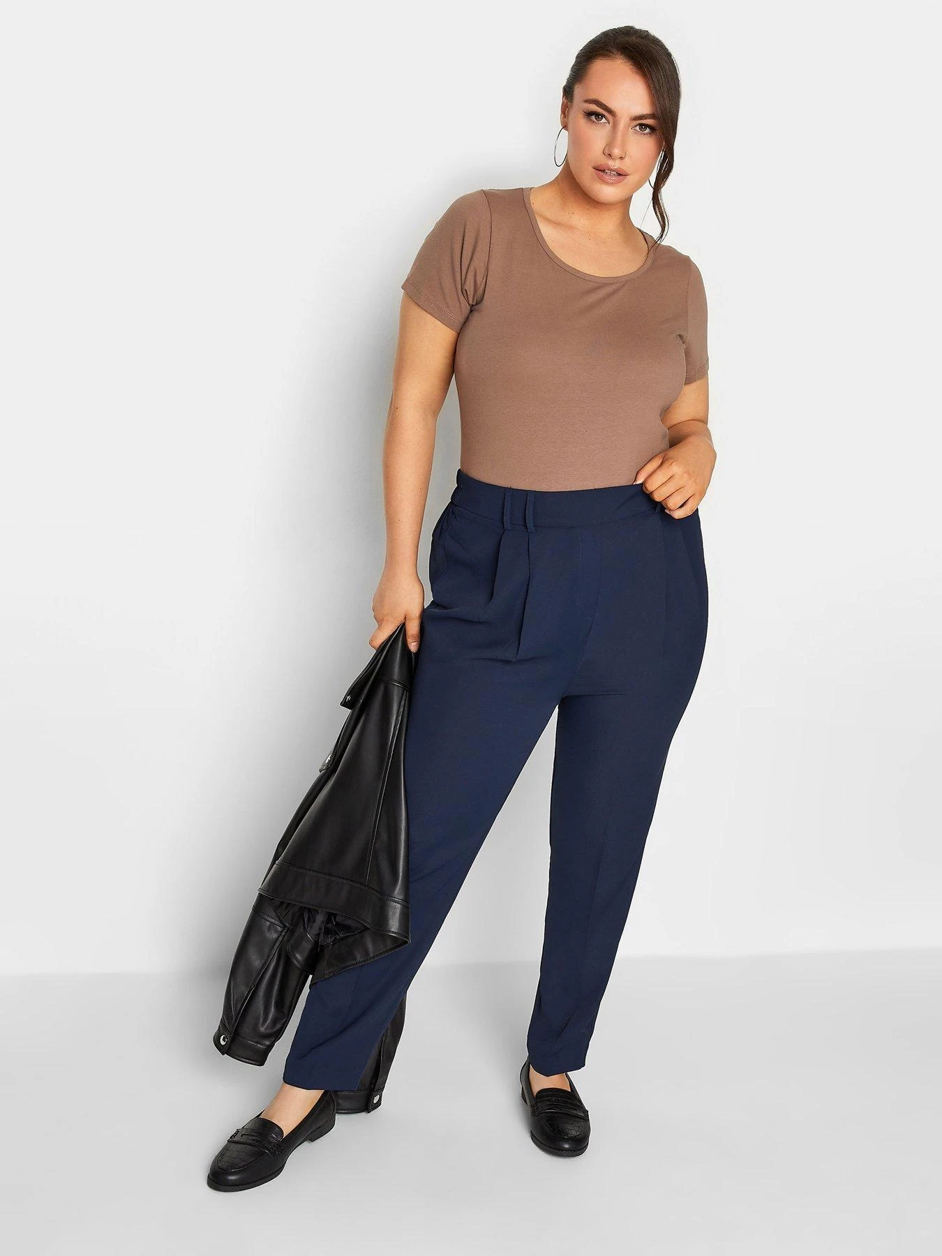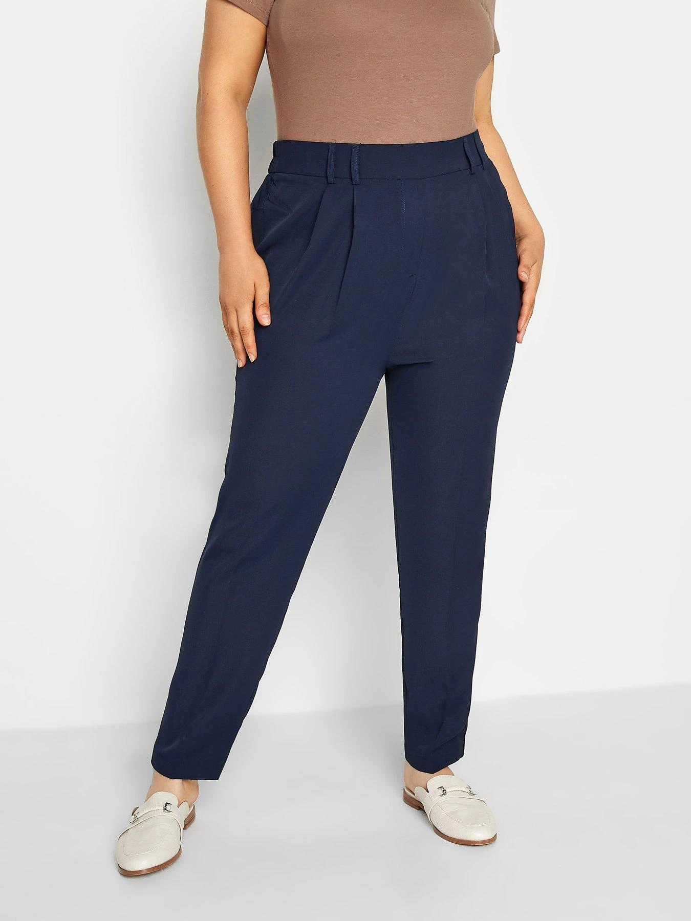 Yours Shark Skin Double Belted Tapered Navy