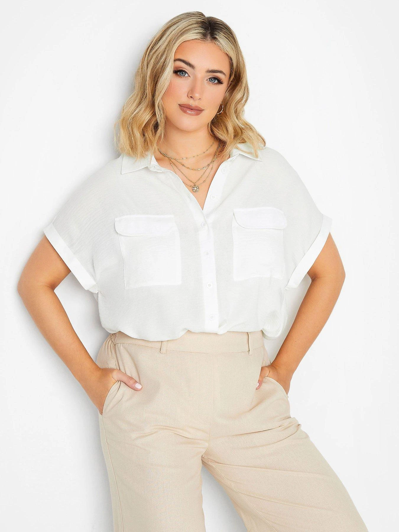 Yours Short Sleeve Utility Blouse White